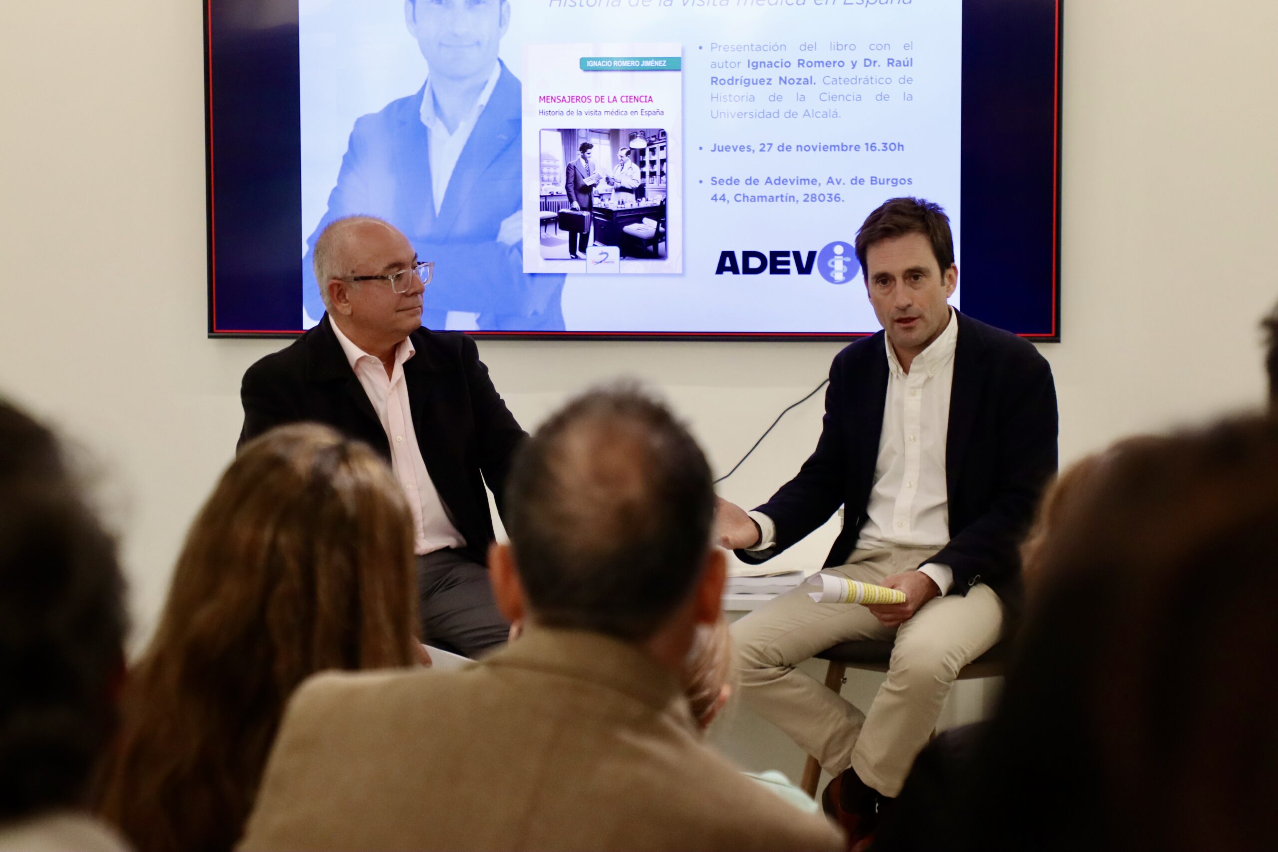 El pasado 27 de noviembre, la sede de ADEVIME fue el escenario de una jornada especialmente significativa para nuestra profesión: la presentación del libro “Mensajeros de la Ciencia. Historia de la visita médica en España”, escrito por nuestro asociado Ignacio Romero Jiménez, fruto de su tesis doctoral y de años de investigación.
